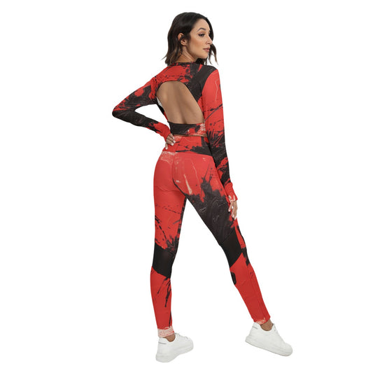 Signature Series red/black All-Over Print Women's Sport Set With Backless Top And Leggings