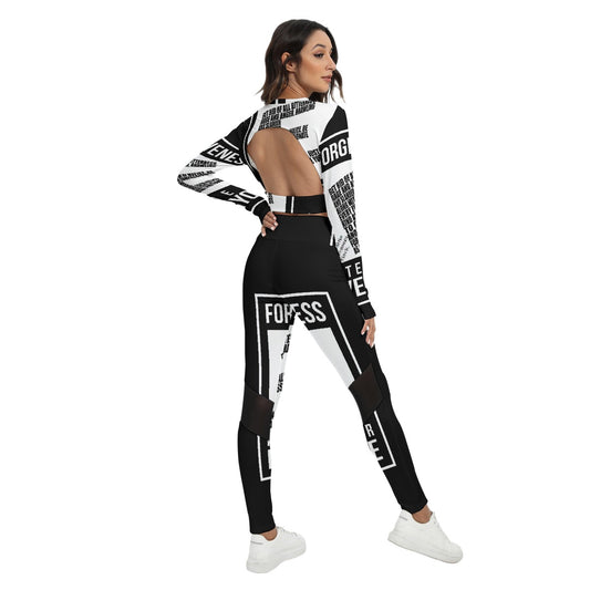 Signature Series B/W All-Over Print Women's Sport Set With Backless Top And Leggings