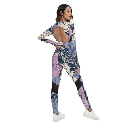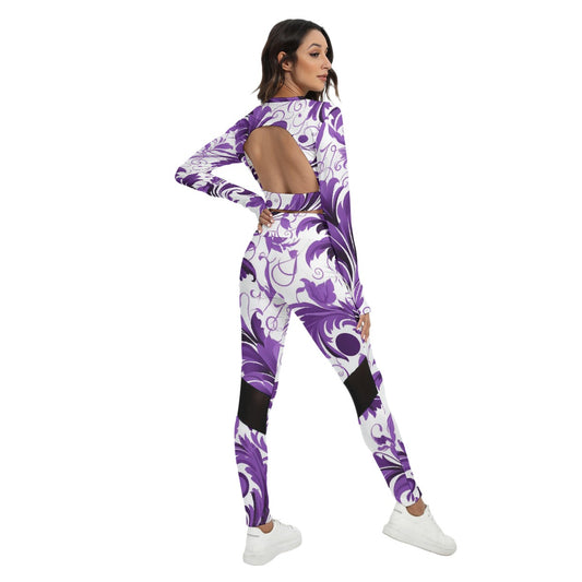 Signature Series Purple floral All-Over Print Women's Sport Set With Backless Top And Leggings