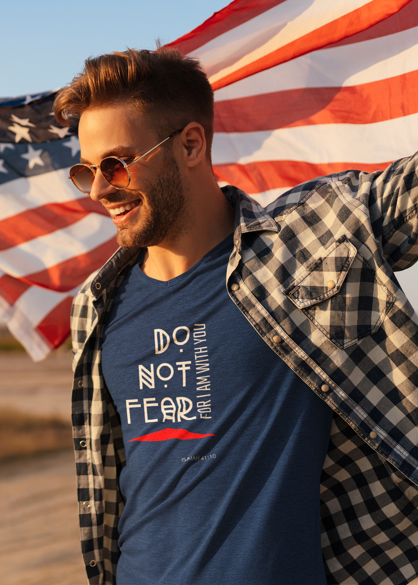 In a world that so often tries to make us afraid, this t-shirt stands as a bold reminder of God's unfailing presence. Draw strength from the timeless promise "Do not fear, for I am with you" every time you wear it. Let your apparel reflect the unwavering faith that carries you through life's ups and downs.