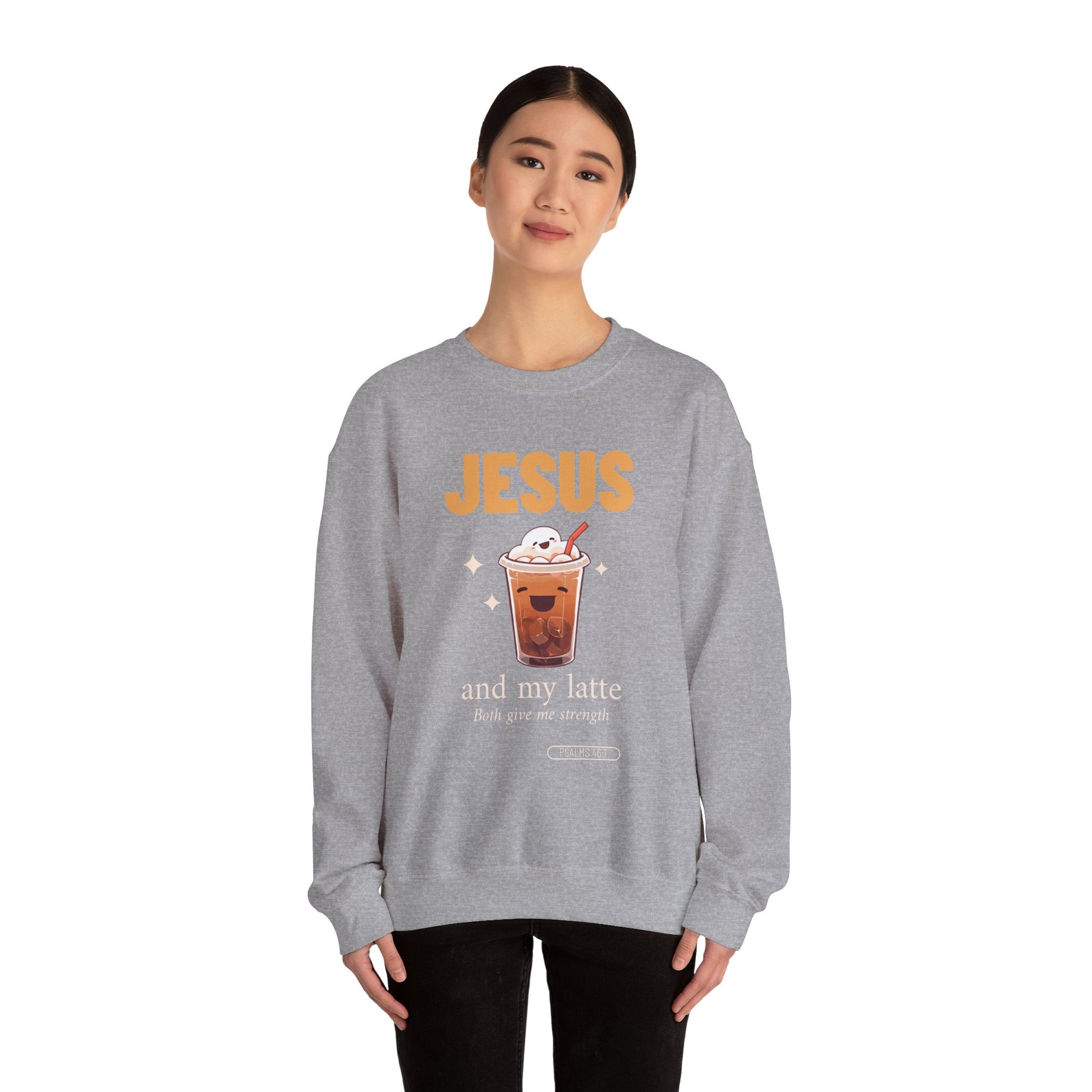 Fuel your soul and your caffeine fix with the "Jesus and My Latte" Crewneck Sweatshirt - a cozy way to show off your faith and your love of coffee.