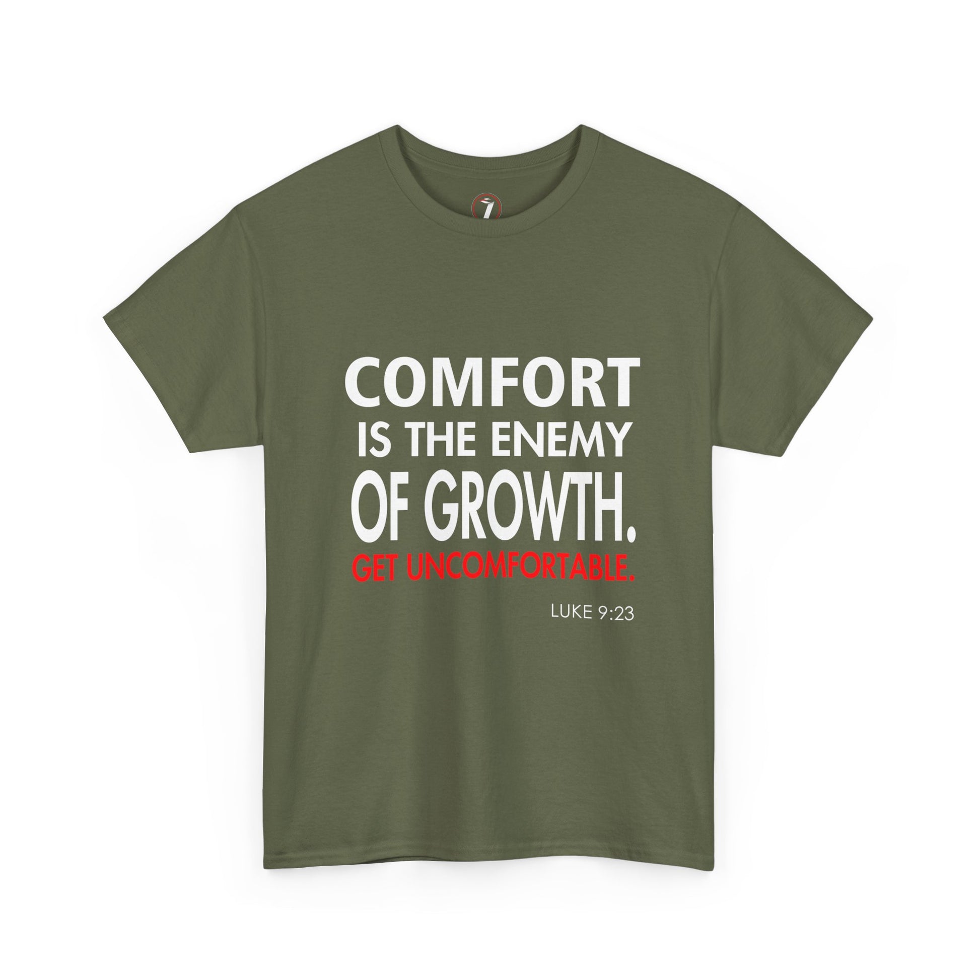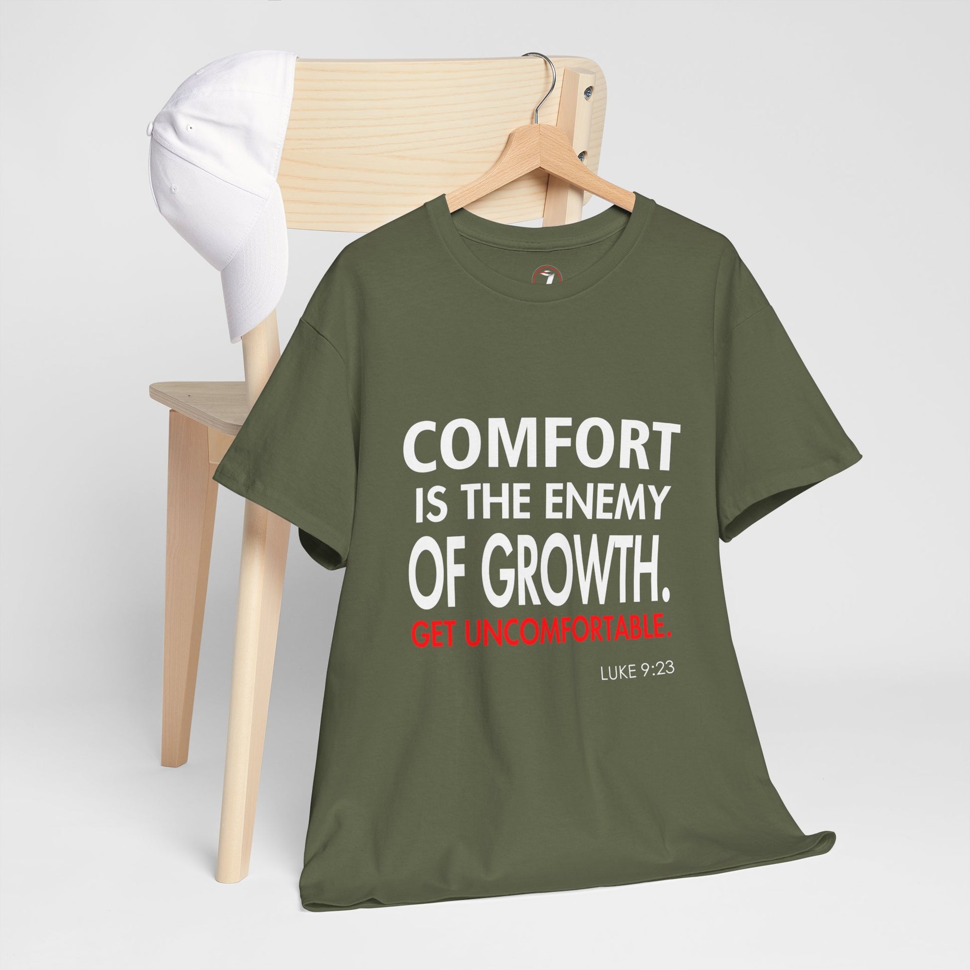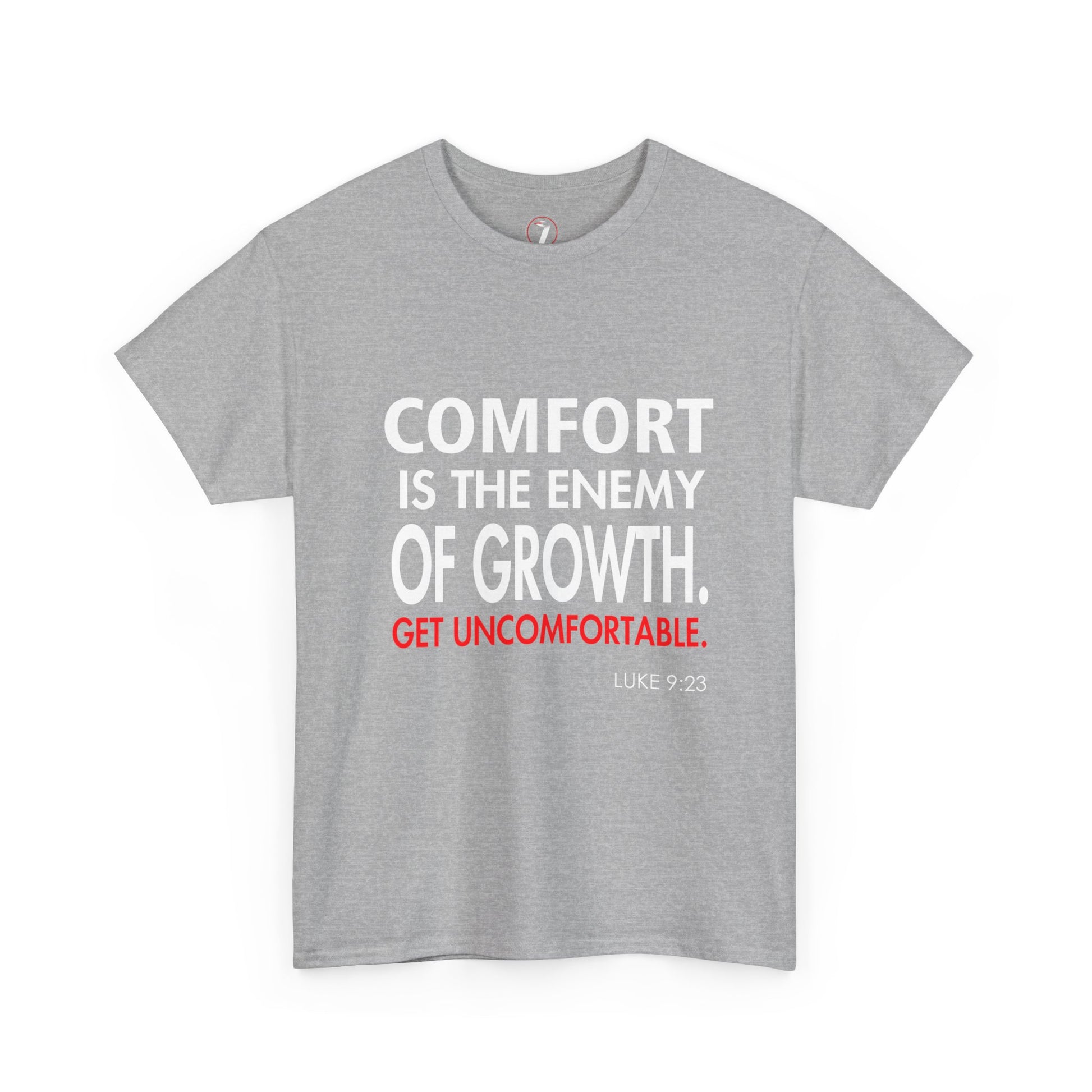 The "Get Uncomfortable" Motivational Tee is your daily push to embrace change, step out in faith, and experience the transformation God has in store. Based on the powerful words of Jesus in Luke 9:23, this shirt challenges you to deny yourself, pick up your cross, and follow Him - no matter how difficult or uncomfortable that may be. Wear it as a visible reminder that your greatest growth happens when you're willing to get out of your comfort zone.