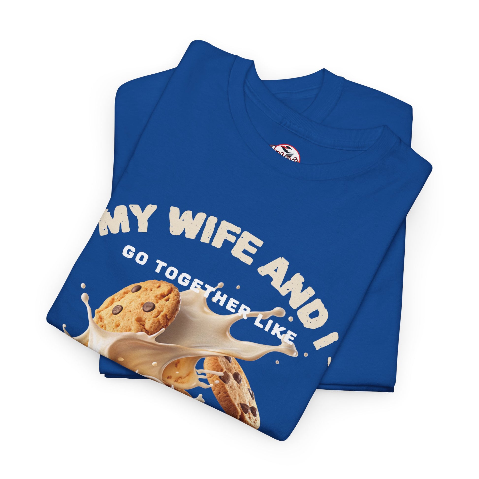 "My wife and I, we go together like cookies and milk." This charming design is a testament to the special connection you share - a partnership that only grows sweeter with time.