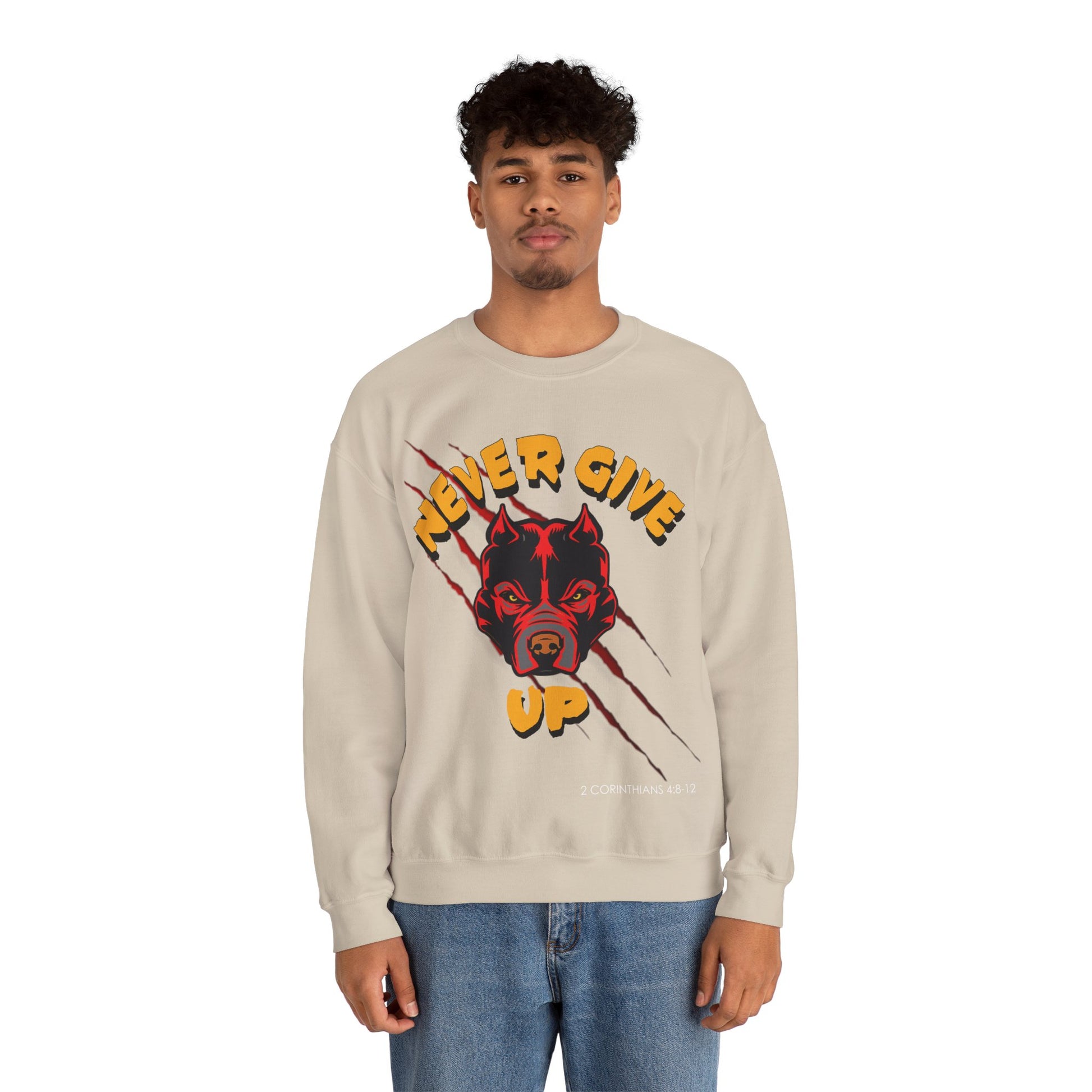 Don't let life's challenges wear you down. Wear this "Never Give Up" Crewneck and let your faith shine through.