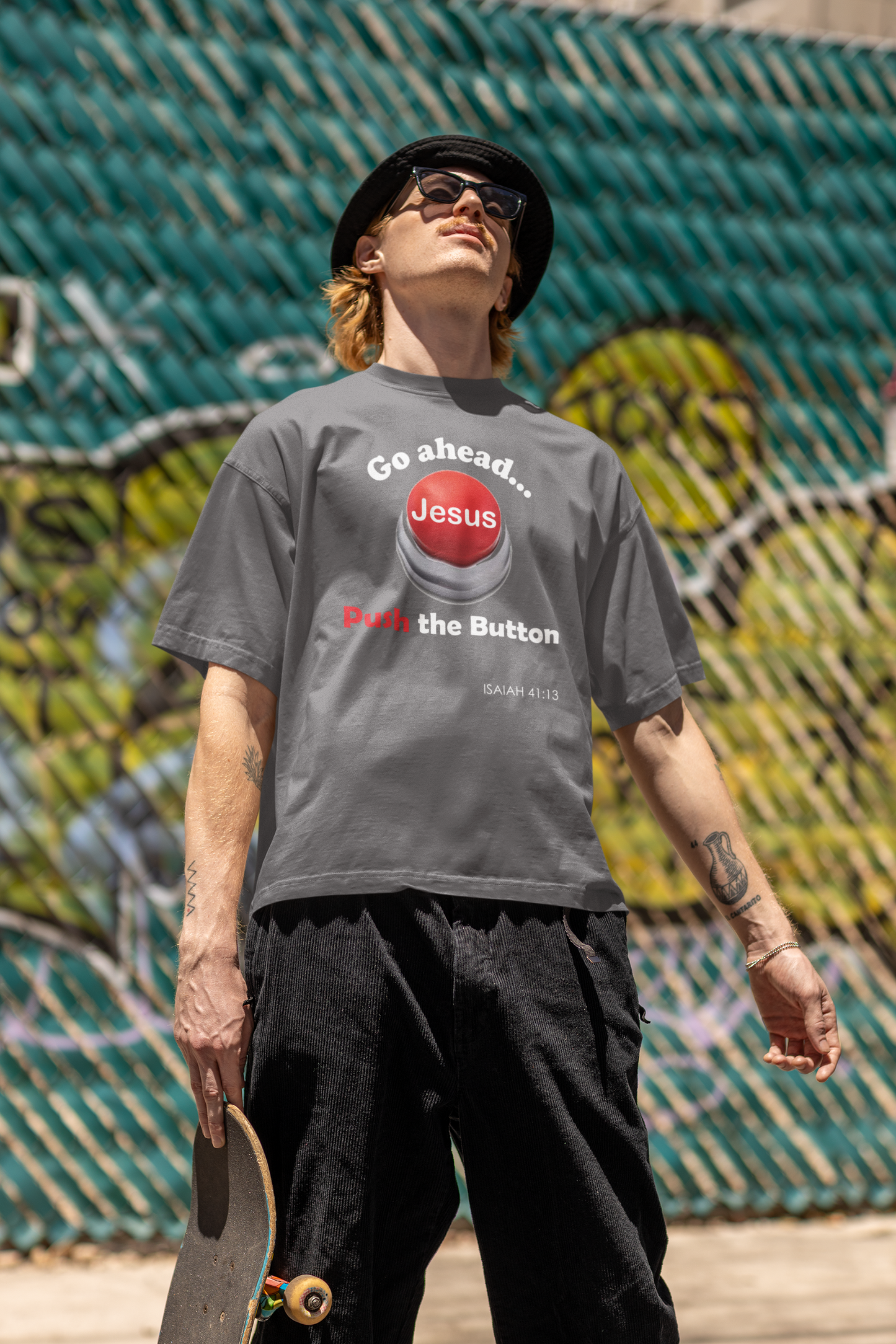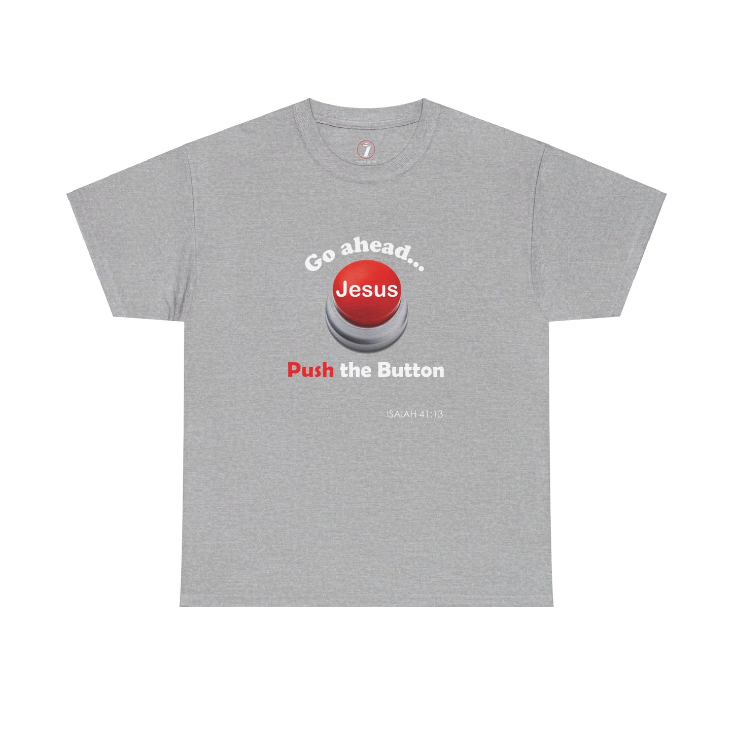 This tee is more than just a fashion piece - it's a wearable testament to your unwavering faith. Inspired by the empowering words of Isaiah 41:13, this shirt serves as a daily reminder that you are never alone. Whether you're running errands, hitting the gym, or spending quality time with family and friends, the "Push the Button Unisex Heavy Cotton Tee" will be your constant companion, a tangible symbol of the strength and protection you find in the Lord.