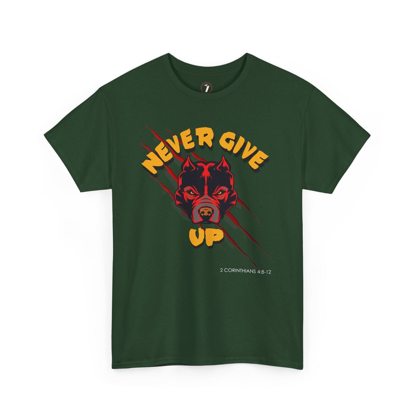 Refuse to give up, no matter what, in the "Never Give Up" unisex heavy cotton tee inspired by 2 Corinthians 4:8-12. This premium, durable shirt is built to last, just like your indomitable spirit.