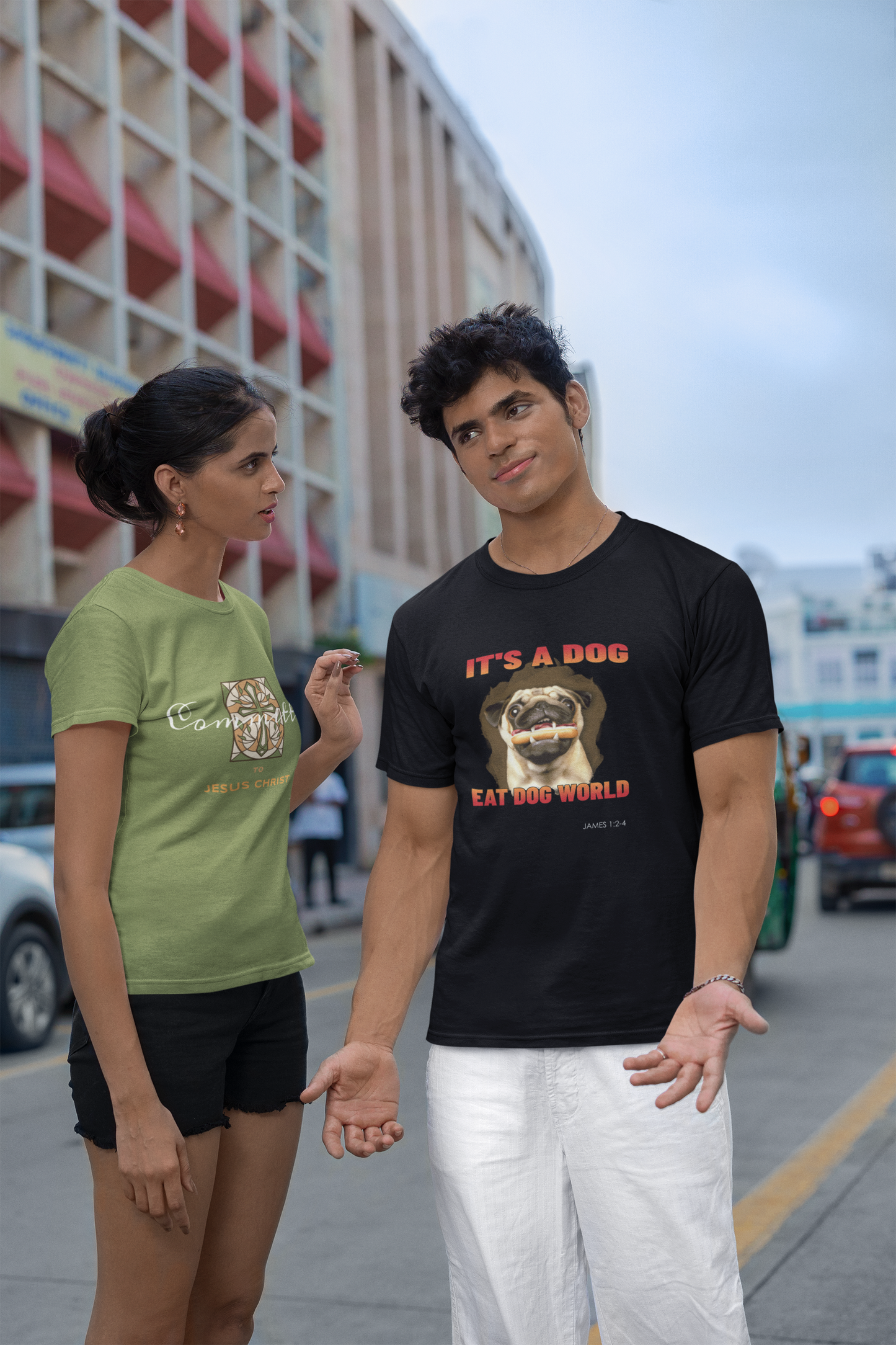 Declaring your devotion has never looked so good. The "Dog Eat Dog Unisex Heavy Cotton Tee" features a bold, eye-catching design that puts your faith front and center.